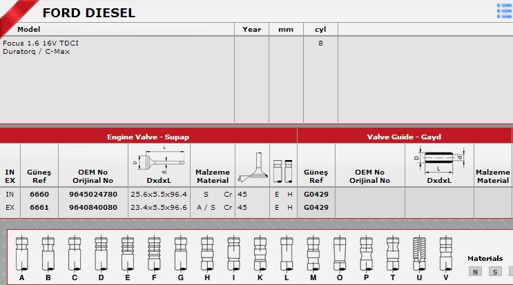 FORD CMAX SİBOP TAKIMI 6660-6661 FOCUS 1.6 TDCI (C-MAX) (8IN-8EX) | M5Q6507AA3