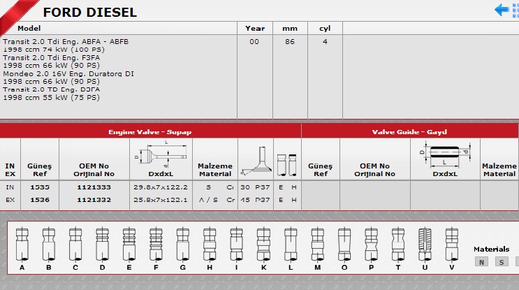 FORD TRANSIT SİBOP TAKIMI 1535 1536 IN 8 EX 8 BOXER-III 2.2 DT 100 120HP TRANSİT 2.4 PUMA MOT