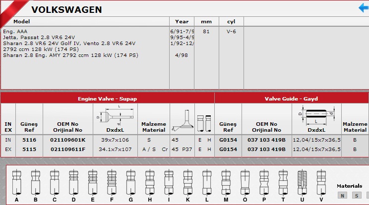 VOLKSWAGEN JETTA SİBOP TAKIMI 5116 5115 JETTA PASSAT 2.8 VR6 24V IN12-EX12 | 021109601K 021109611F